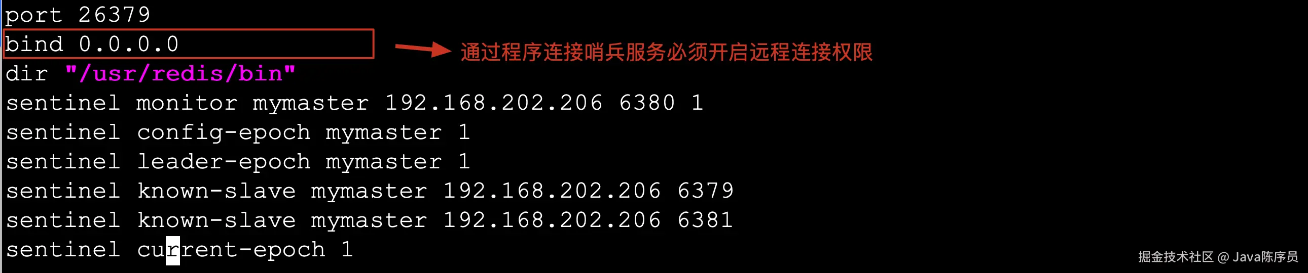 解决方案:在哨兵的配置文件中加入 bind 0.0.0.0 开启远程连接权限
