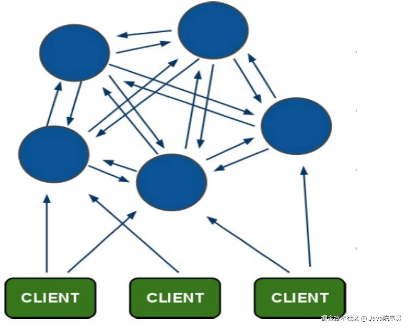 - 所有的 Redis 节点彼此互联(