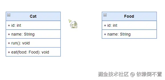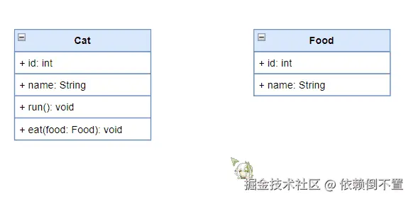 run方法,无参数和返回值eat方法,有一个Food类型参数,无返回值
