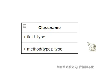 此外,如果方法参数太多,导致一个类图框太长了,可以省略参数名称,即写成访问修饰符 方法名(参数1类型, 参数2类型, ...): 返回值类型形式,例如: