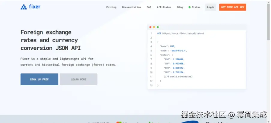 Fixer 是一个轻量级且功能强大的 API。它提供当前和历史外汇汇率。它拥有直观的 API 结构。因此,您可以在不到 10 分钟的时间内将其集成到您的网站中。