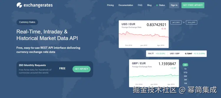 2. Exchange Rates API – 一流的免费货币转换 API