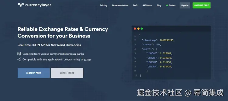 6. 货币 API – 另一个很棒的免费货币转换器 API