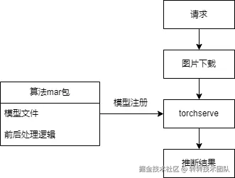- 将模型权重文件及前后处理逻辑python代码打包成一个mar包