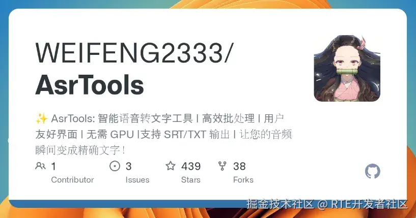 AsrTools 是一款智能语音转文字工具,旨在通过高效的批处理和用户友好的界面,将音频文件快速转换为精确的文字。该工具无需 GPU 支持,支持生成 SRT 和 TXT 格式的字幕文件,适合多种应用场景。其界面基于 PyQt5 和 qfluentwidgets,操作简单,适合各类用户使用。(@机器之心 SOTA 模型)