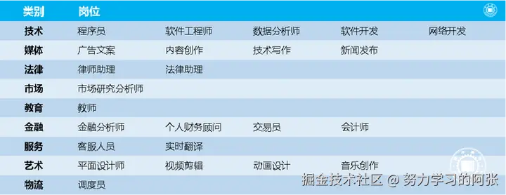 AI擅长的资料检索和整合技能受影响较大的是基础岗位,很多技能岗位也许会被替代,但AI无法管理和决策,那么和管理相关的专业也许就是我们将来的绿灯专业,未来企业需要更多的也许是管理型和决策型人才,比如工业管理、工厂管理、生产管理、项目管理、公司管理等,也有可能生成一个新岗位:AI管理。