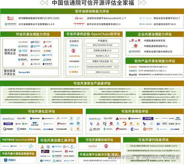 基于“安全”“合规”“健康”“可持续”的开源生态发展目标,中国信通院公布了 2024 年可信开源最新评估结果(点击查看详情) ,包括可信开源治理能力成熟度评估、软件产品开源合规能力评估、SOSS 标准符合性测试、可信开源治理工具(SCA)评估、开源代码库能力评估、可信开源社区评估、可信开源社区- OpenChain开源合规能力双评估、可信开源大模型成熟度评估、信息技术应用创新软件产品自研创新能力评估等多项新增内容,为推动开源技术的安全合规应用与发展提供了重要参考。