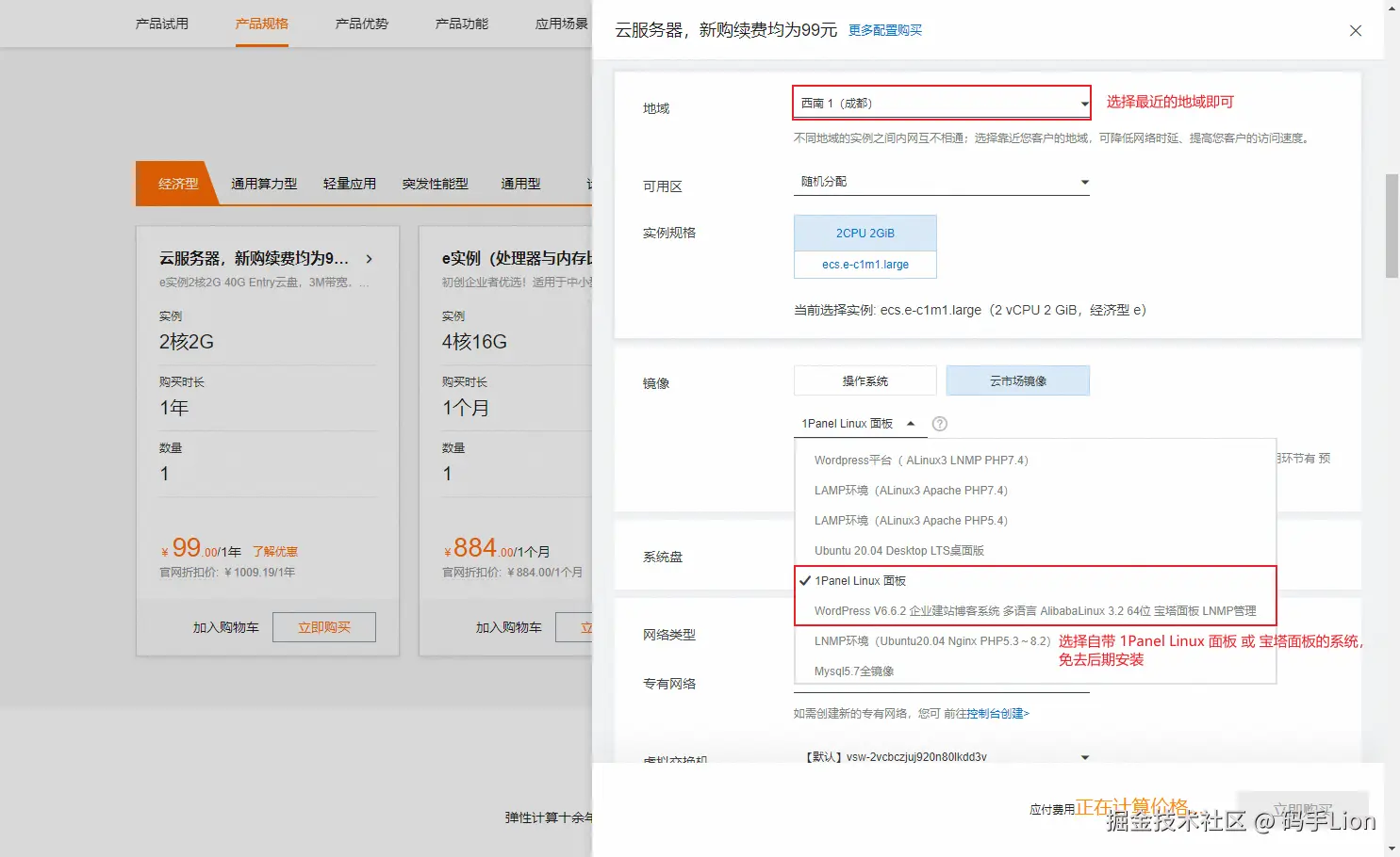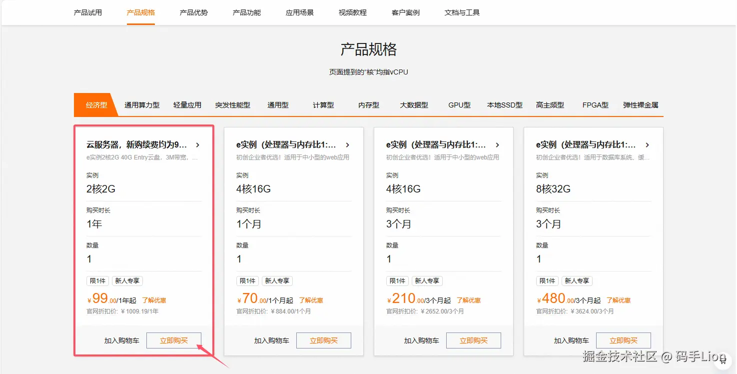 登录到你选择的云服务提供商的网站,选择一款适合你网站规模的服务器套餐。完成支付后,按照指引设置服务器的基础环境。通常,服务商会有详细的指南帮助你完成这一过程。这里以阿里云为例: