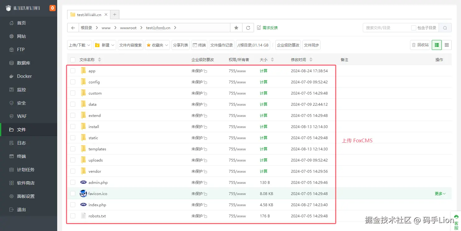 5、将站点根目录内原有的所有文件清空,并上传你准备好的网站系统文件(如 WordPress、FoxCMS 等)至站点根目录下。如果上传的是压缩文件,请确保在服务器上解压这些文件;