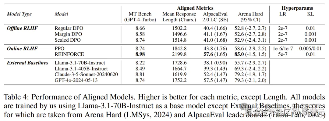 对齐模型的性能:所有模型均由 Llama-3.1-70B-Instruct 作为基础模型进行训练