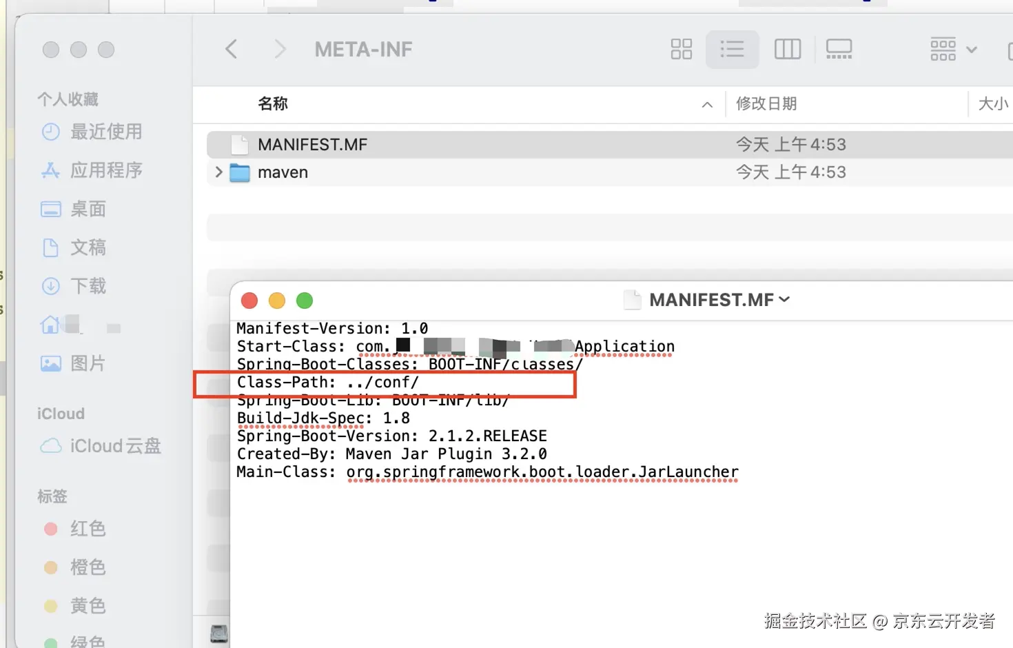 将springboot的jar包解压后,可以看到.MF文件中加了一个类路径 ../conf