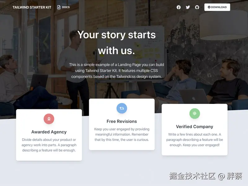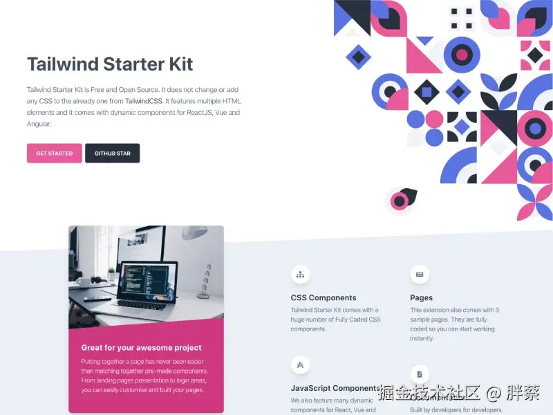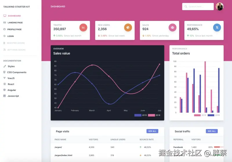 Tailwind Starter Kit 是基于TailwindCSS实现的一款开源的、使用简单的极简模板扩展。会用Tailwincss就可以快速入手使用。Tailwind Starter Kit 是免费开源的。它不会在原始的TailwindCSS框架中更改或添加任何CSS。它具有多个HTML元素,并附带了ReactJS、Vue和Angular的动态组件。