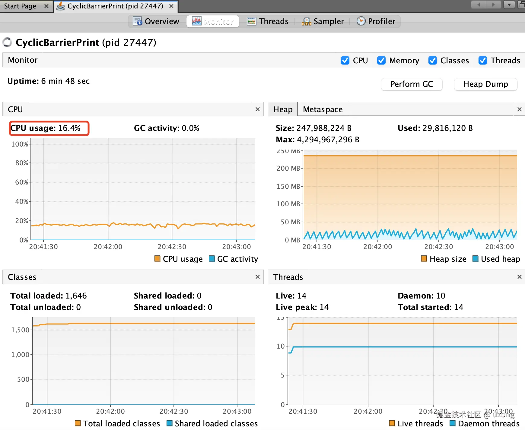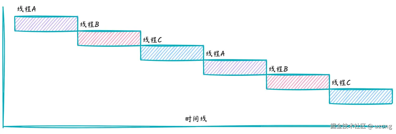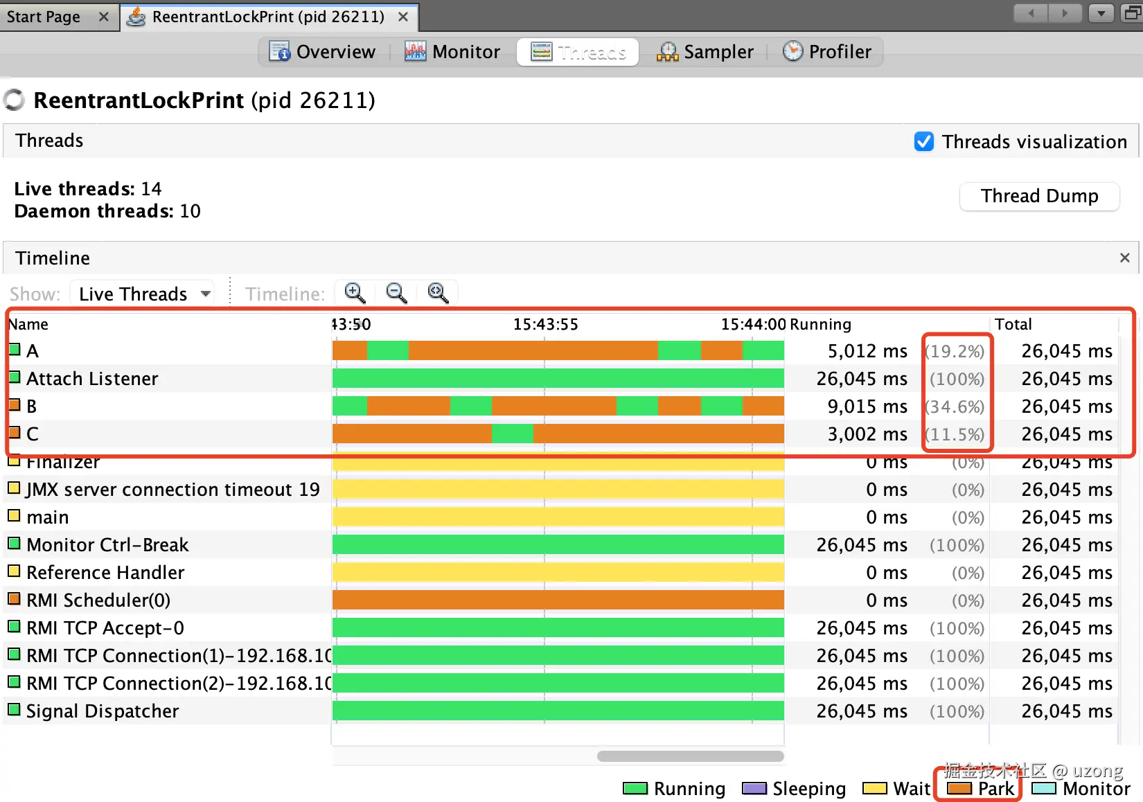 因此从理论上:C 线程 running 状态时间最长 (目前只能使用 CyclicBarrier 写出这样的代码)