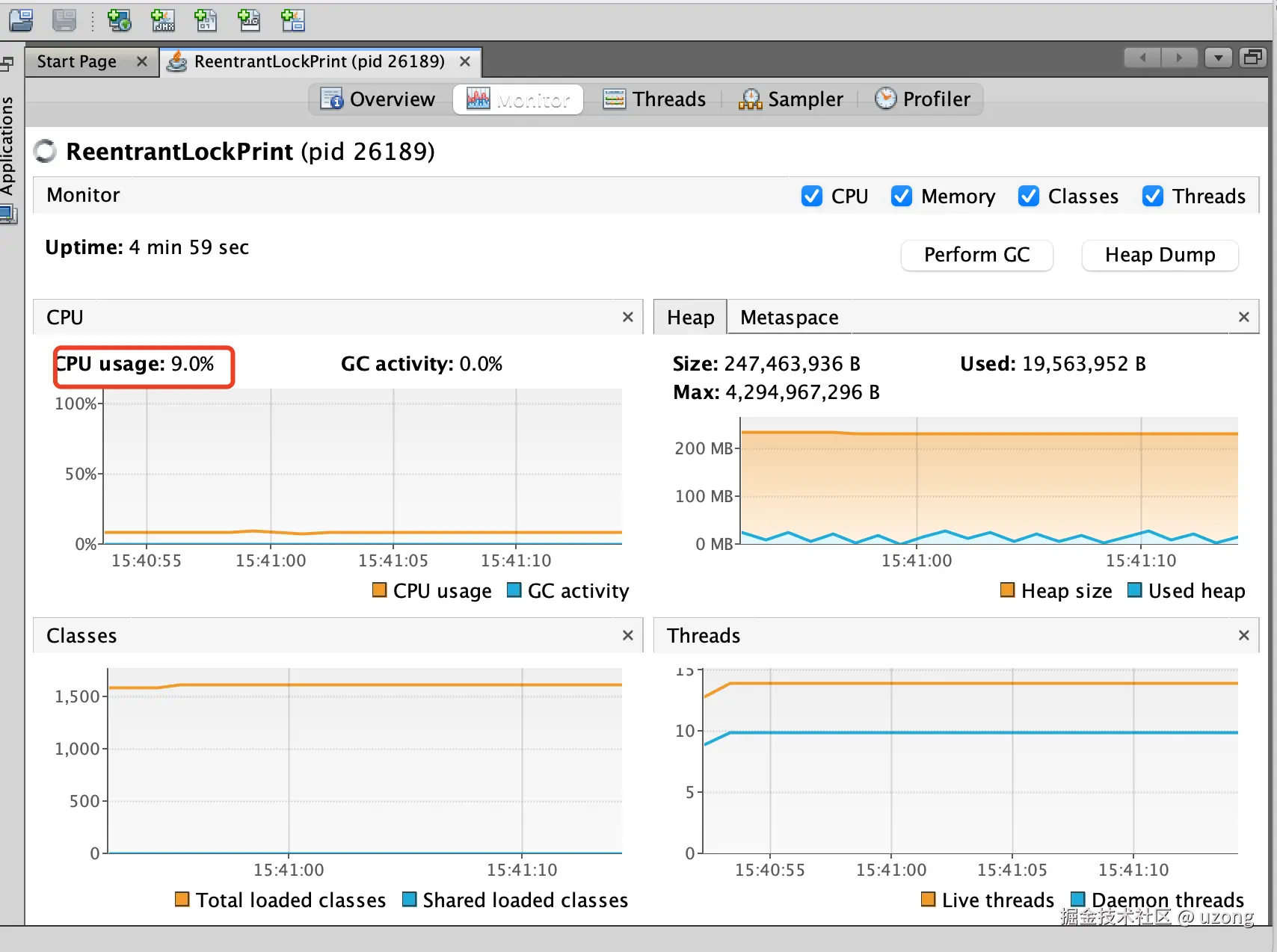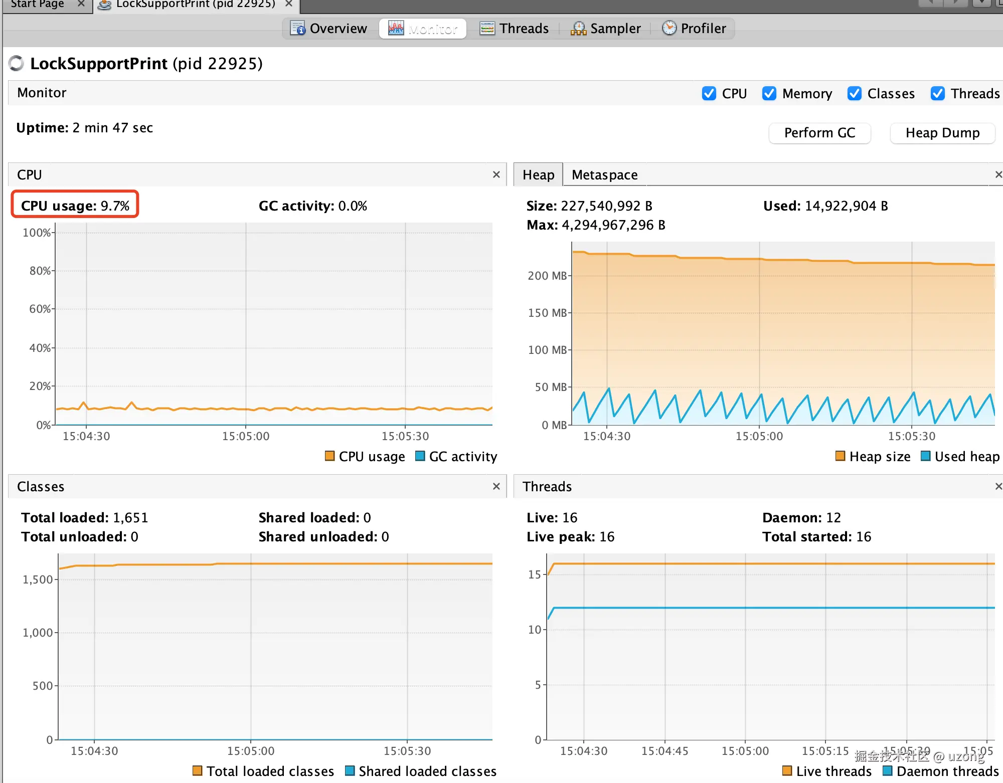 LockSupport 代码是最好理解的,逻辑清晰易懂,是不错的方式。看看性能消耗情况: