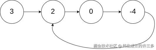 如果链表中有某个节点,可以通过连续跟踪 next 指针再次到达,则链表中存在环。 为了表示给定链表中的环,评测系统内部使用整数 pos 来表示链表尾连接到链表中的位置(索引从 0 开始)。注意:**pos** 不作为参数进行传递 。仅仅是为了标识链表的实际情况。