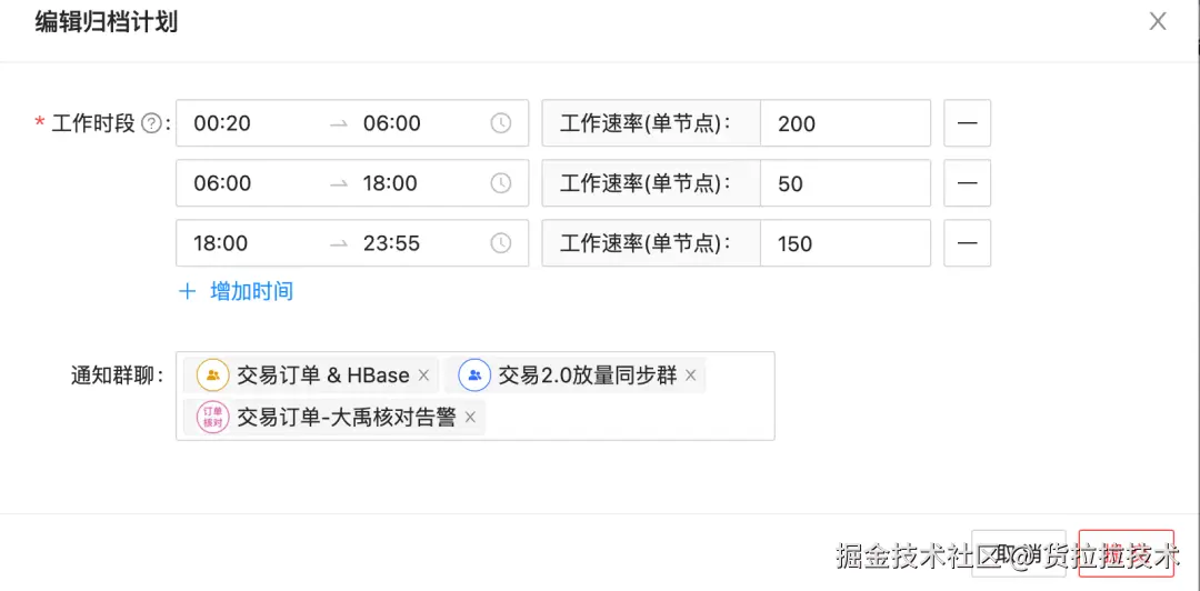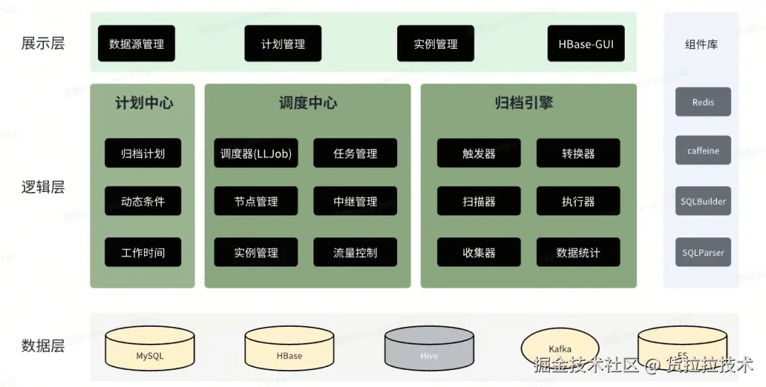 - 归档方式多样化:基于各领域的现状分析,订单/运单域采用归档到Hbase的方式,发票/工单归档到Mysql。