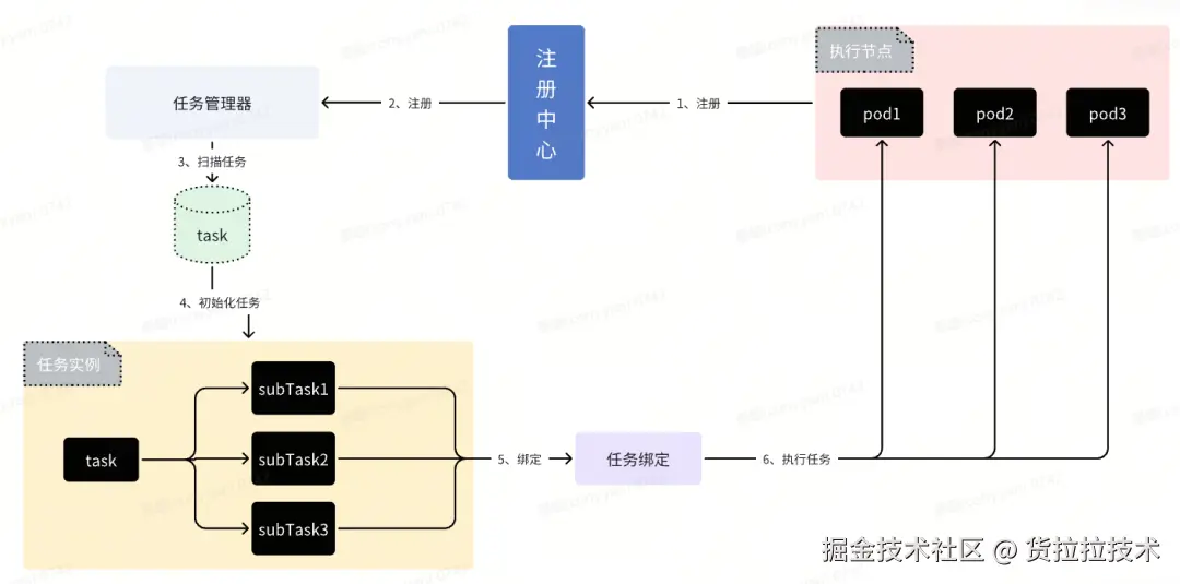 调度中心是任务处理的核心。主要负责节点的注册/发现、任务的拆分、任务绑定等。
