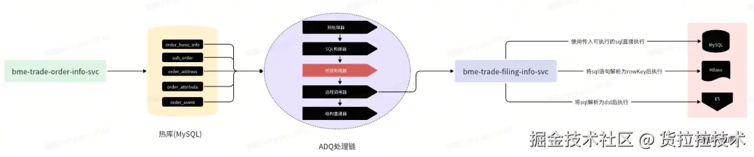 数据归档完之后,我们面临着归档数据查询的诉求,因此,我们设计了一个统一的归档数据查询插件(ADQ),能够“傻瓜式”的复用于多个查询服务。最终,实现了数据流的闭环。