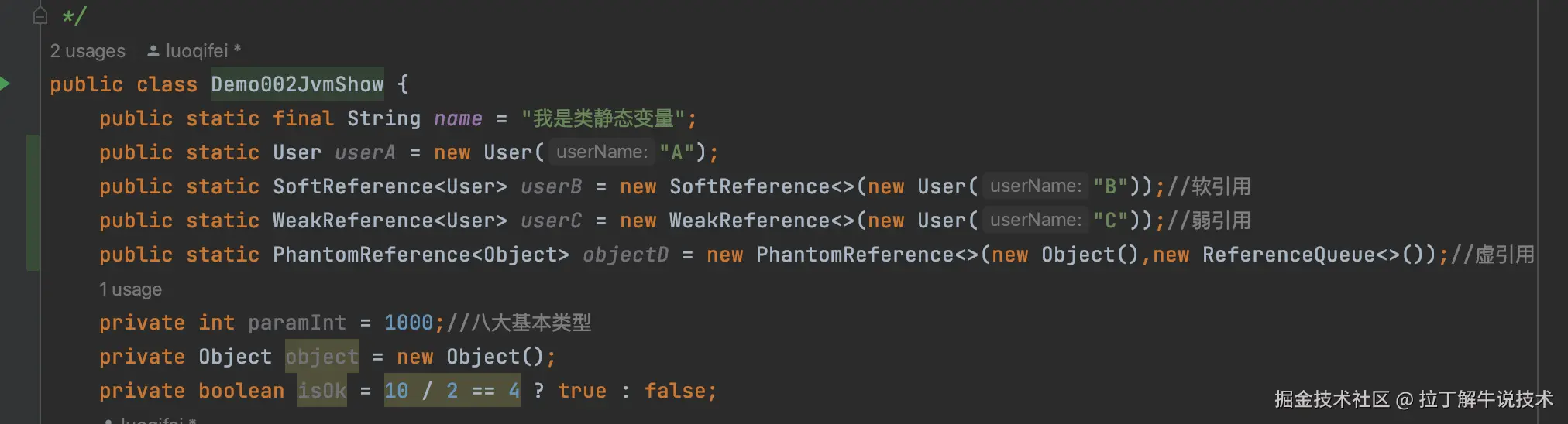public static SoftReference<User> userB = new SoftReference<>(new User("B"));//软引用