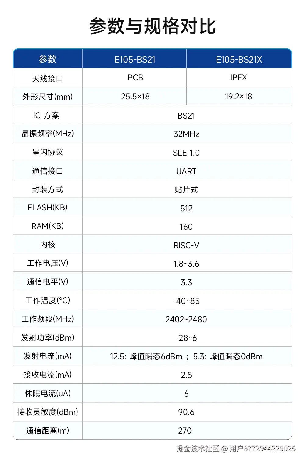 E105-BS21系列SLE星闪模块模块是基于星闪协议 1.0 版本的串口转 SLE(SparkLink Low Energy)星闪模块,具有体积小、功耗低、