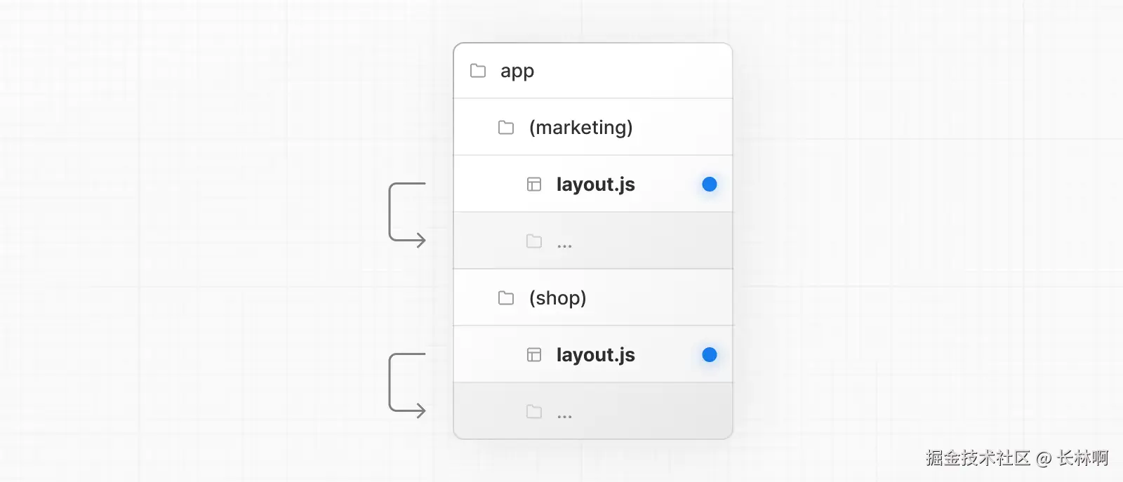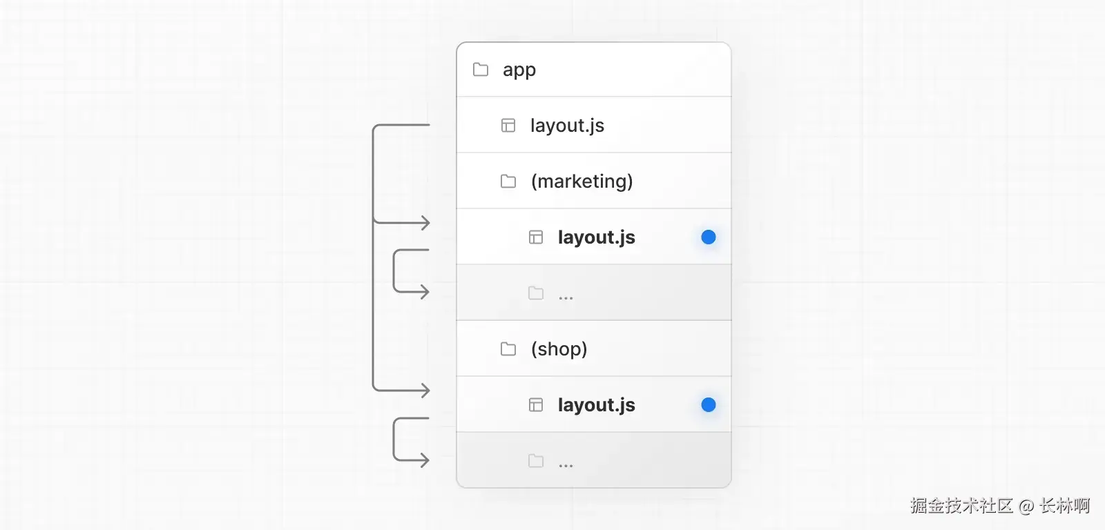 根据上面效果,不难发现,同一个目录下,如果有 layout 和 page,page 会作为 children 参数传入 layout 中,也就是 layout 会包裹同层级的 page。