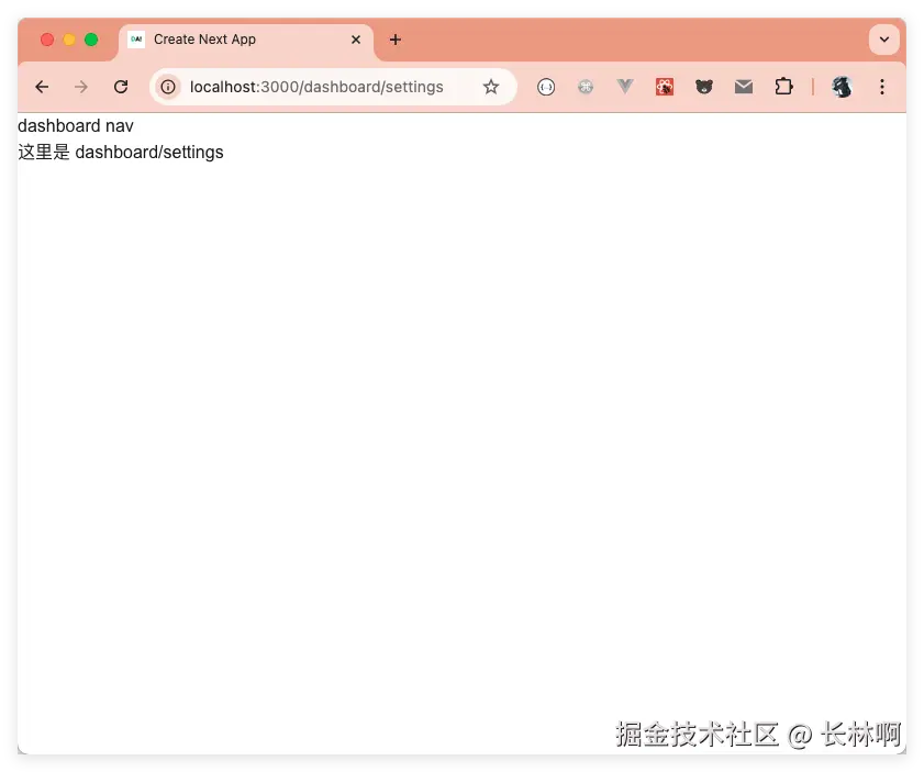 当访问 /dashboard/settings 时,效果如下: