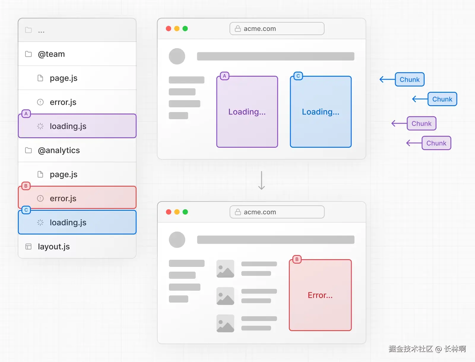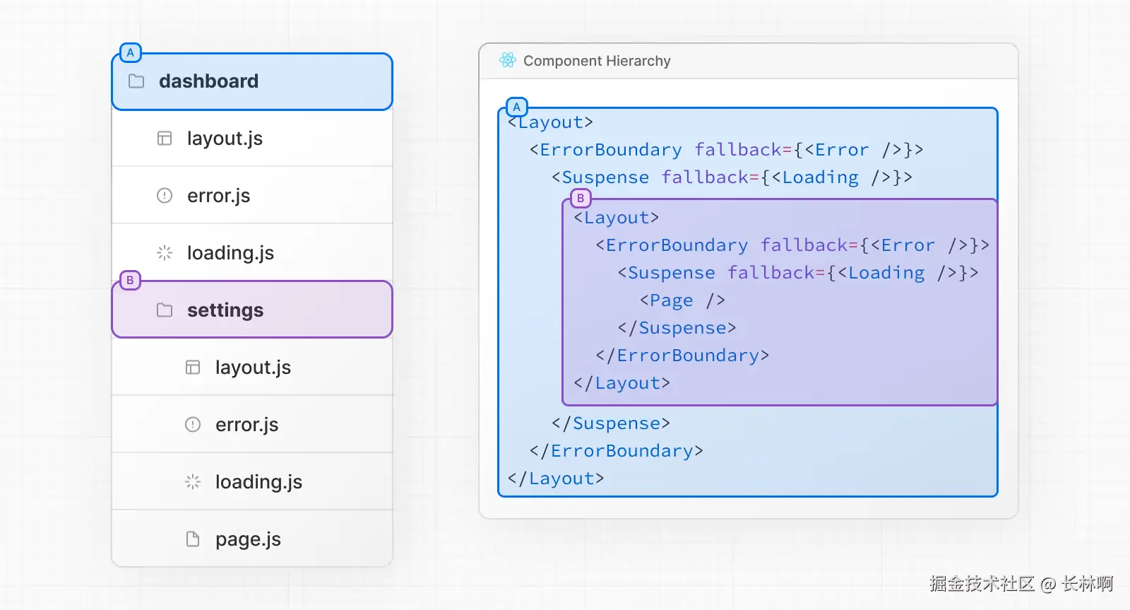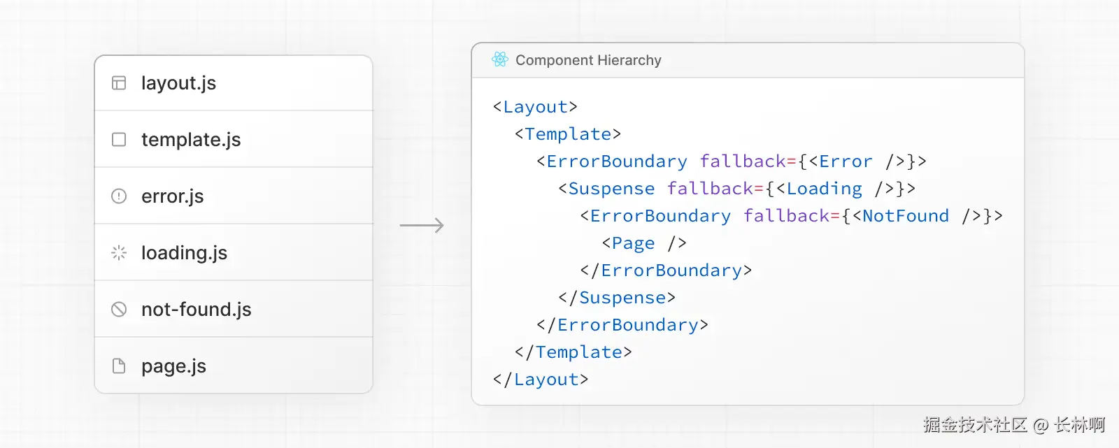 layout.jstemplate.jserror.js(React 错误边界)loading.js(React Suspense 边界)not-found.js(React 错误边界)page.js或嵌套layout.js