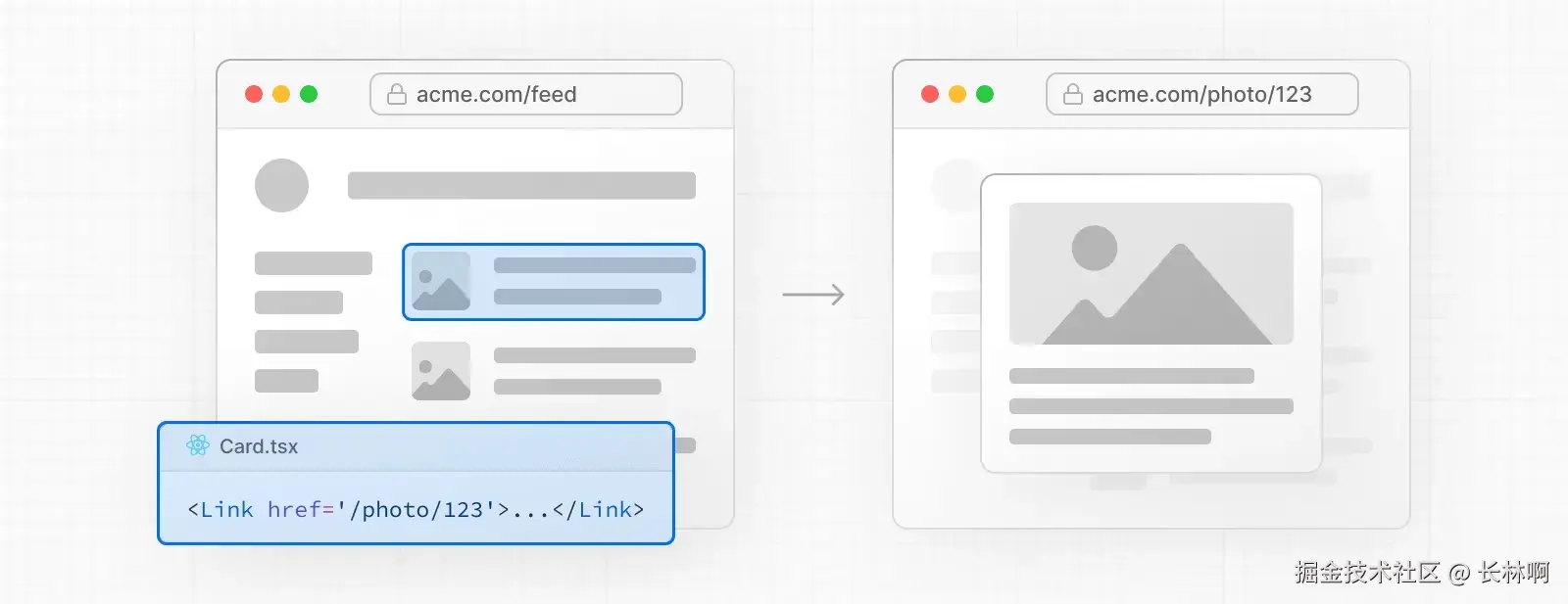 page.tsx文件为每个路由创建单独的用户界面。将上面 Pages Router 示例改成 App Router 后,目录结构如下:└── app ├── page.ts s ├── about │ └── page.ts └── blog ├── [id] │ └── page.ts └── page.ts-