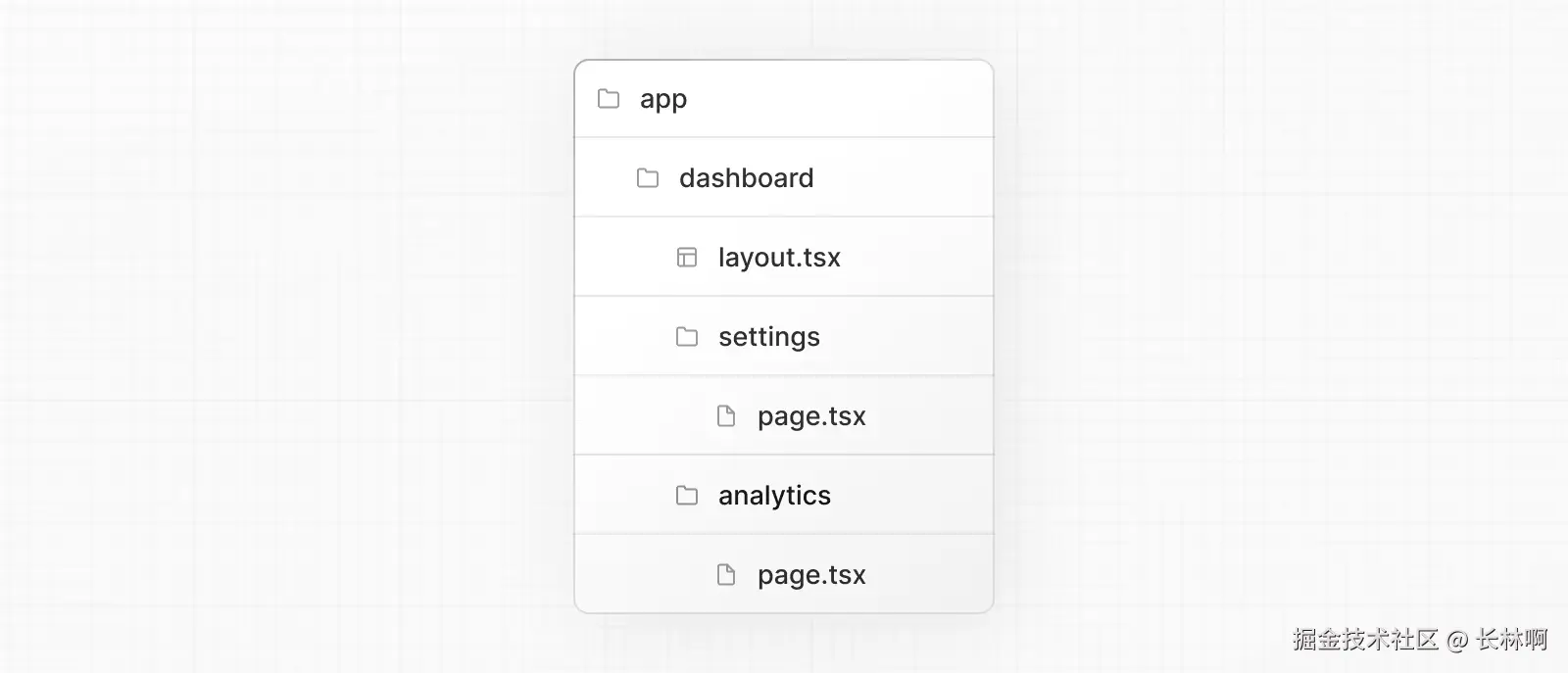 在上图的目录结构中,dashboard/layout.tsx 是 /dashboard/settings 和 /dashboard/analytics 两个路由的通用布局。
