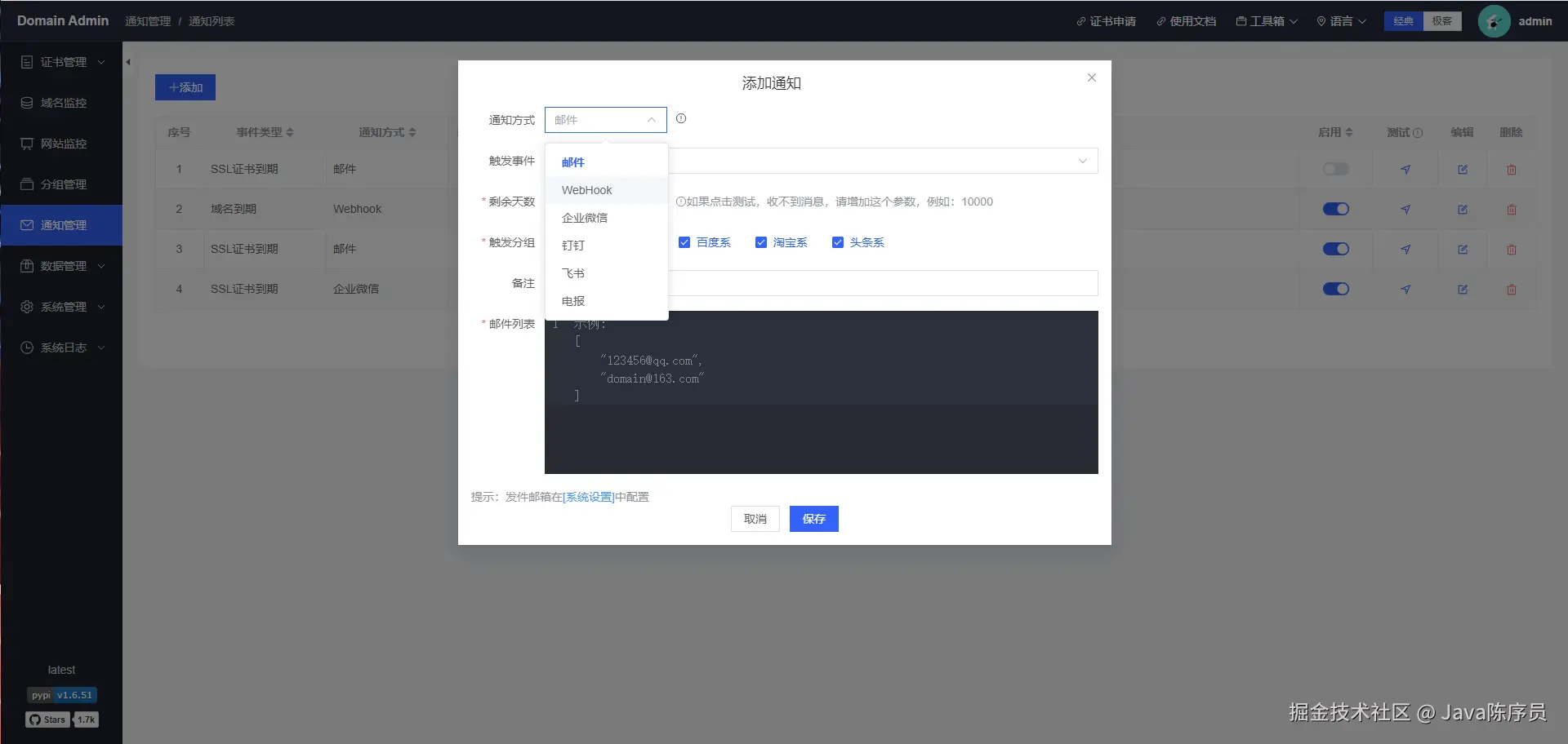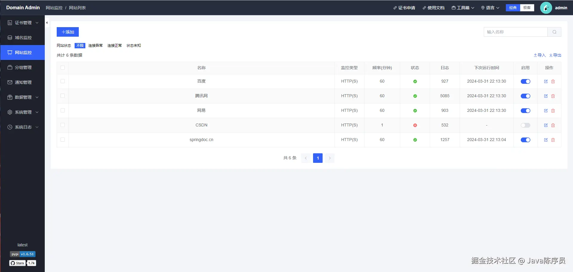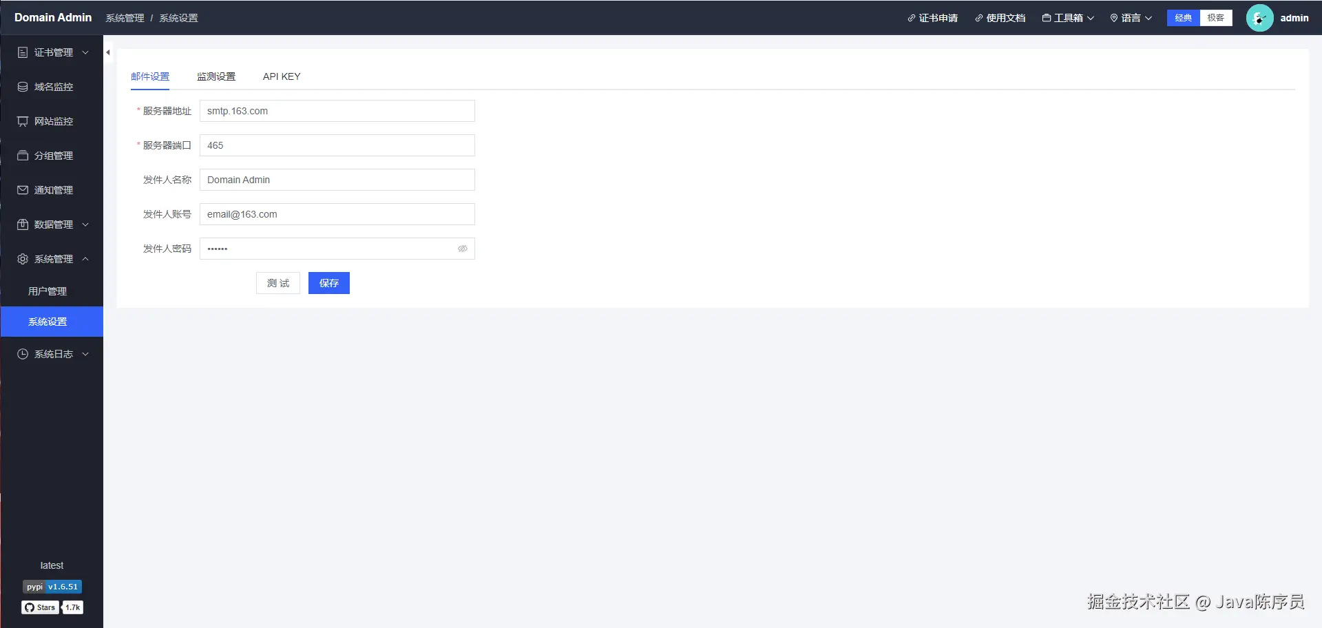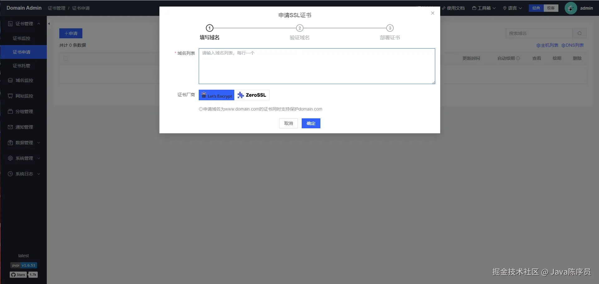 项目地址:https://github.com/dromara/domain-admin