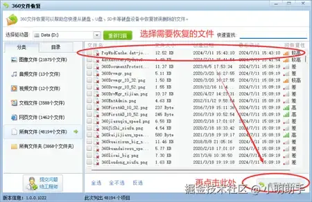 高效方法4:使用360文件恢复进行回收站恢复
