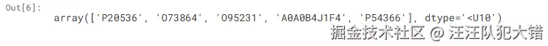 train_protein_ids数组包含142246个protein_ids。使用下面的代码打印出前5个条目: