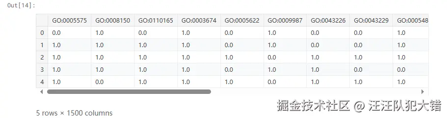 接下来,我们将使用选定的GO词条id过滤训练词条,从而创建一个新的dataframe。