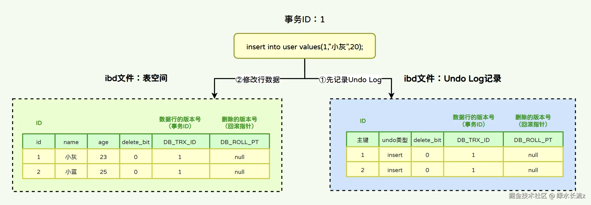 其中事务ID与回滚指针和Undo Log日志密切相关,另外在InnoDB中,Undo Log分为Insert Undo Log和update Undo Log两种类型,其中删除操作也是借助update Undo Log来完成的。