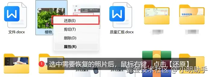 在使用电脑整理自己相机SD卡里面的照片时,如果不小心删除了自己的珍贵照片,这时候先不用惊慌,相机存储卡删掉的照片可以找回吗?当然可以,我们可以使用电脑内置的回收站去将误删的照片找回来。使用电脑里的回收站进行文件还原的方法如下: