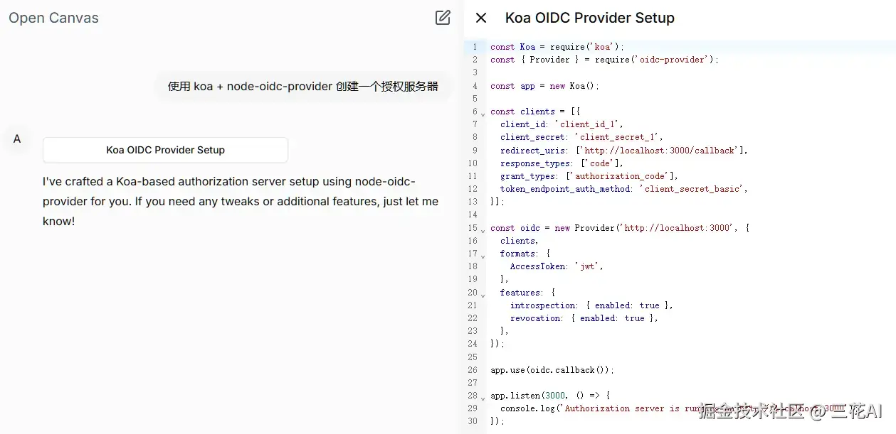 Open Canvas[4] 是由 langchain-ai 社区开源的 OpenAI Canvas 替代版本,支持本地化部署。实际体验与 chat 功能没啥区别?你们可以自己试试,在线使用[5]
