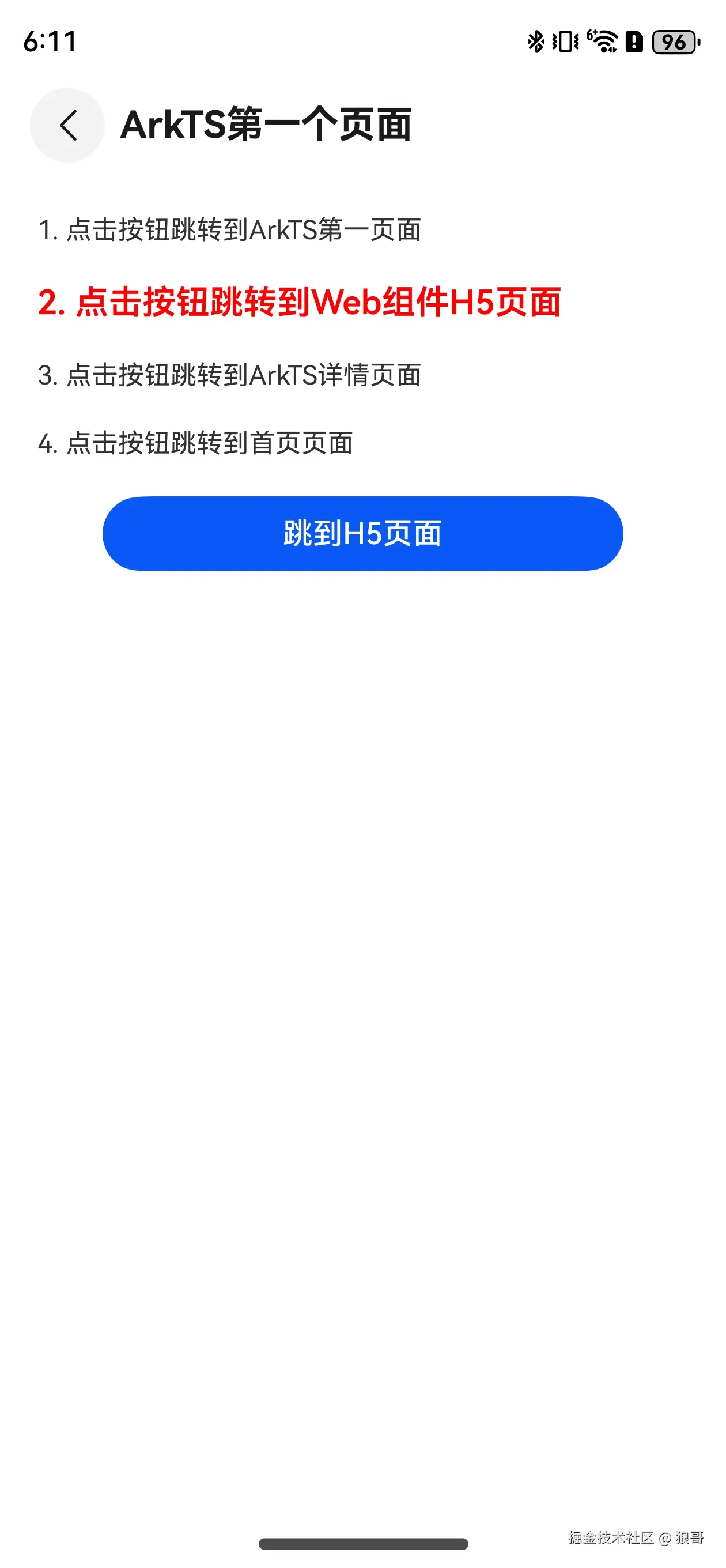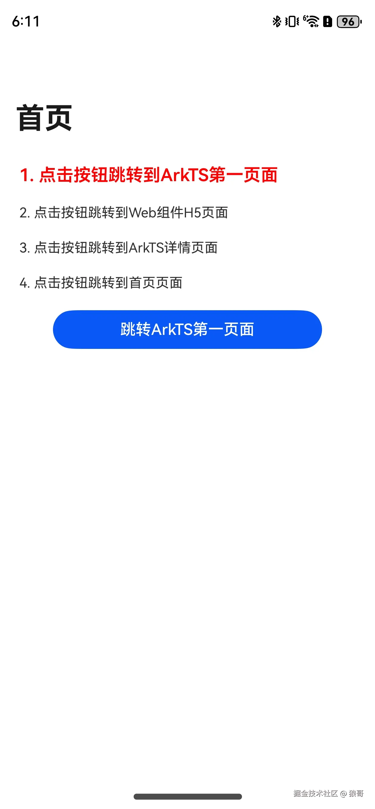 Text('1. 点击按钮跳转到ArkTS第一页面')