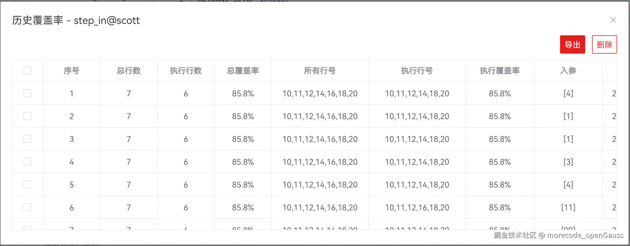 openGauss这么多工具?到底要选哪个?(1062) morecode_openGauss 2024-10-18 28 阅读1分钟 #openGauss #入门 #安装 #数据库 #开源 知识来源:docs-opengauss.osinfra.cn/zh/ 显示覆盖率 按照 调试函数/过程后,点击图标,弹出覆盖率信息。 #openGauss #入门 #安装 #数据库 #开源 知识来源:docs-opengauss.osinfra.cn/zh/