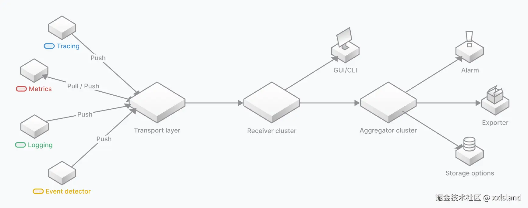 - 分布式追踪:追踪分布式系统中的请求流,记录请求在各个组件之间的传递过程,识别性能瓶颈。