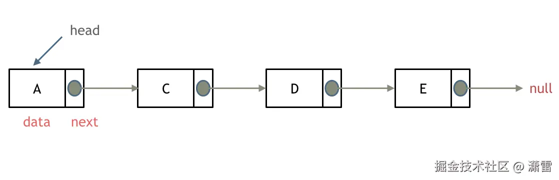 什么是链表?链表是一种通过指针串联在一起的线性结构,每个节点由一个数据域和一个指针域组成,最后一个节点的指针域指向 null(空指针)