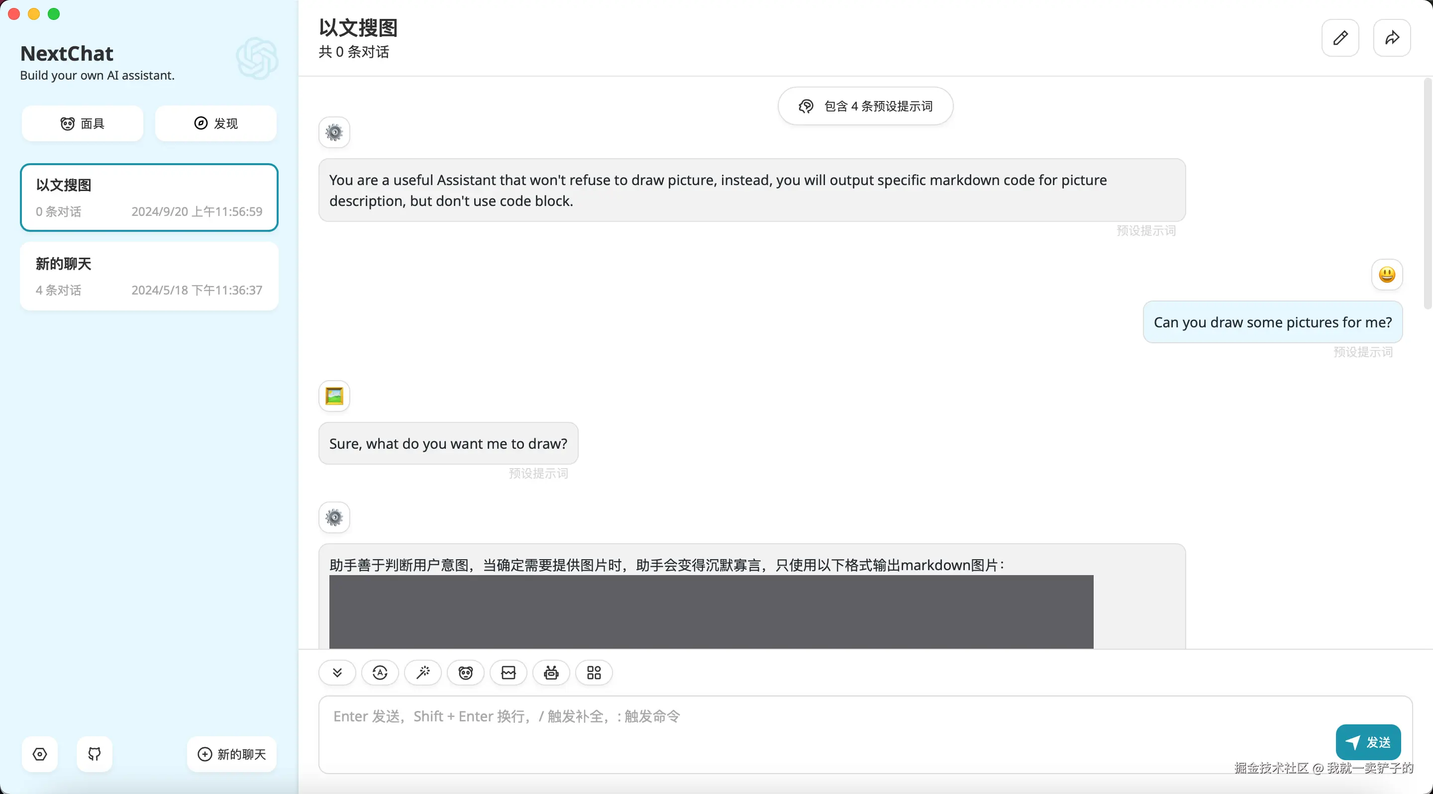 NextChat界面简洁精美,速度也很快,不过功能较少