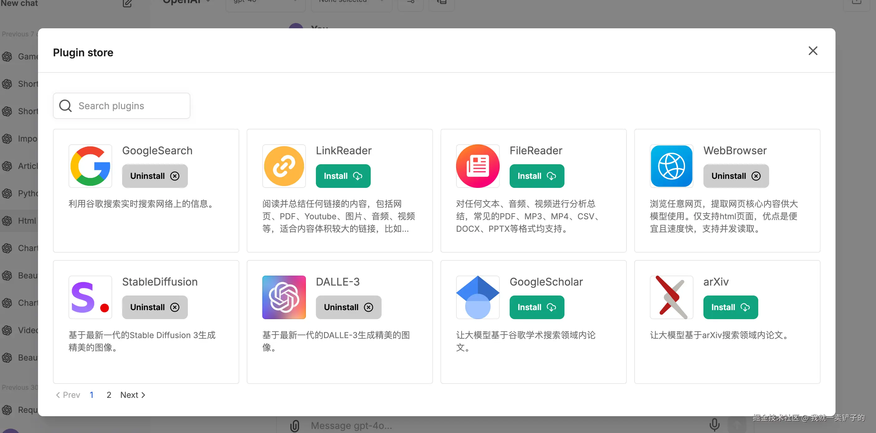 Chatbox和NextChat则完全不支持插件,没有插件市场之类的功能。