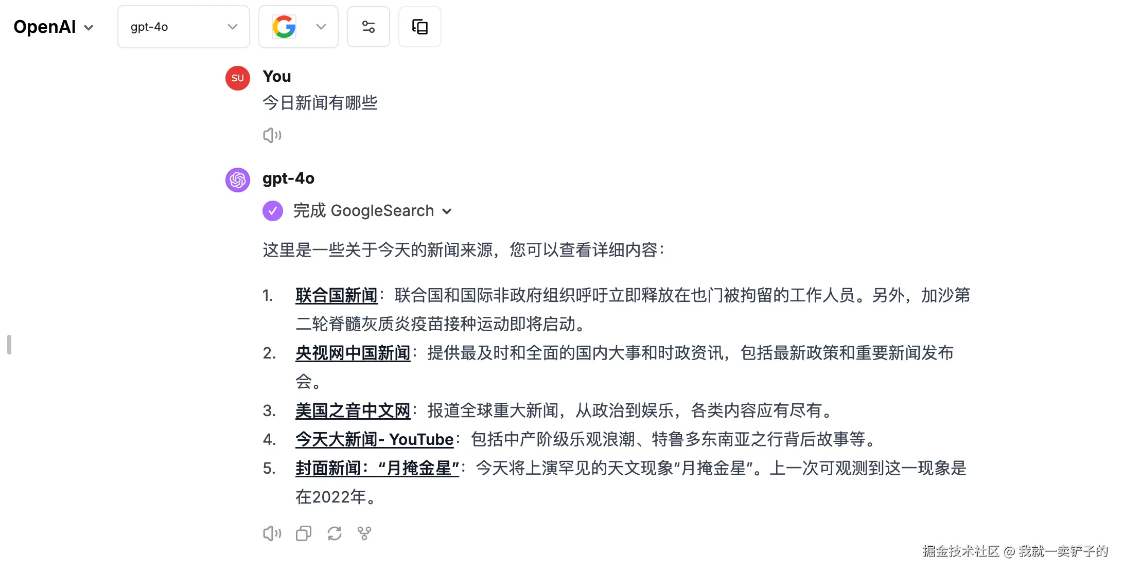 CloseChat内置了Google搜索插件,选中即可使用,无需配置