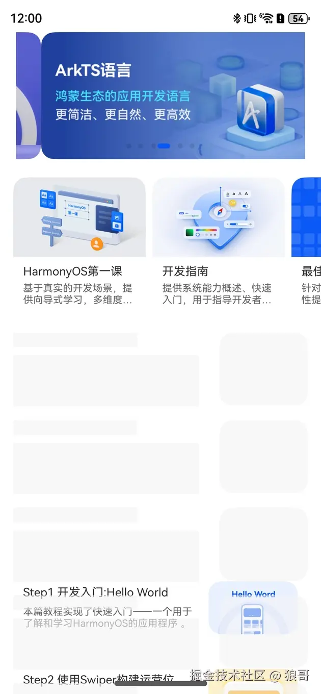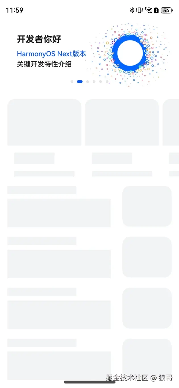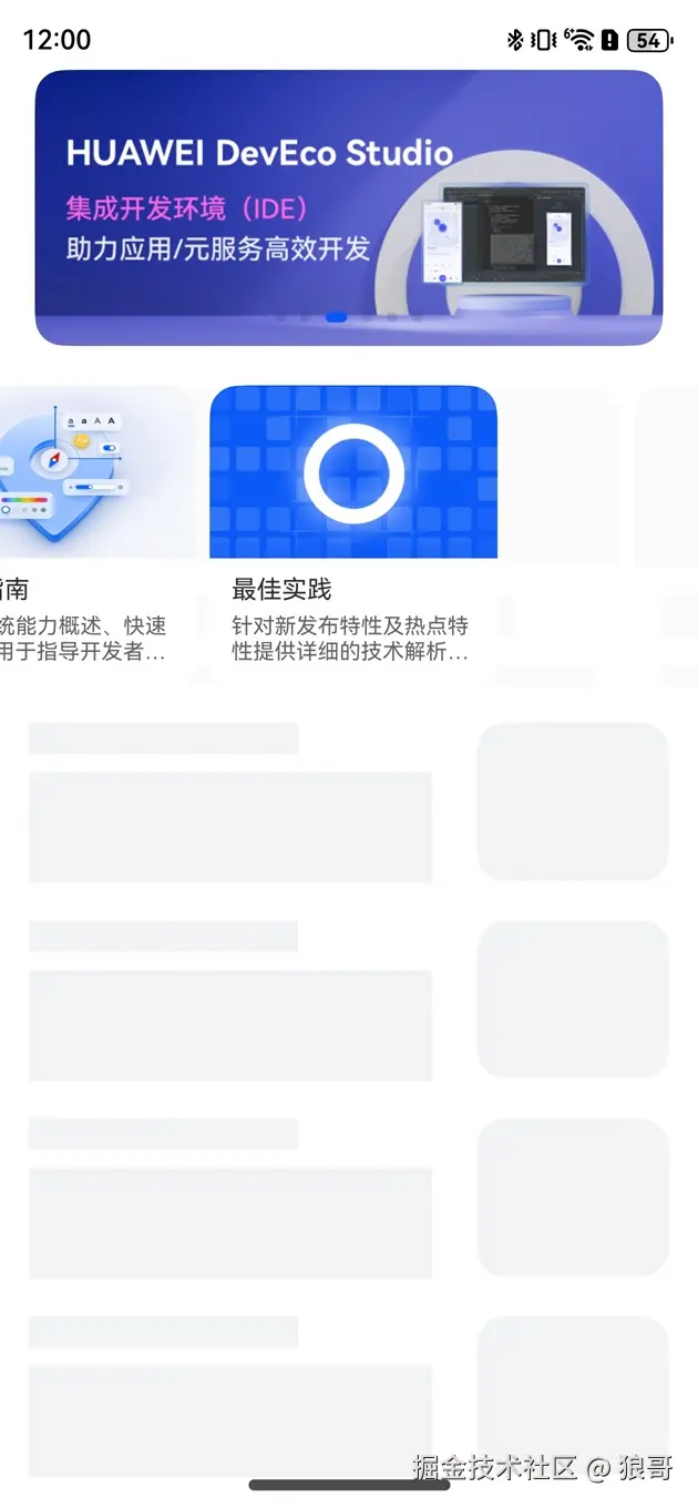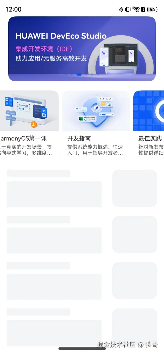 在HarmonyOS(鸿蒙系统)中实现骨架屏(Skeleton Screen)通常用于提升应用的加载体验,特别是在网络请求数据尚未返回时显示一个大致的页面框架,让用户知道页面正在加载中。下面介绍如何使用if/else渲染、foreach渲染、显式动画以及组件内转场等技术在HarmonyOS中实现骨架屏。