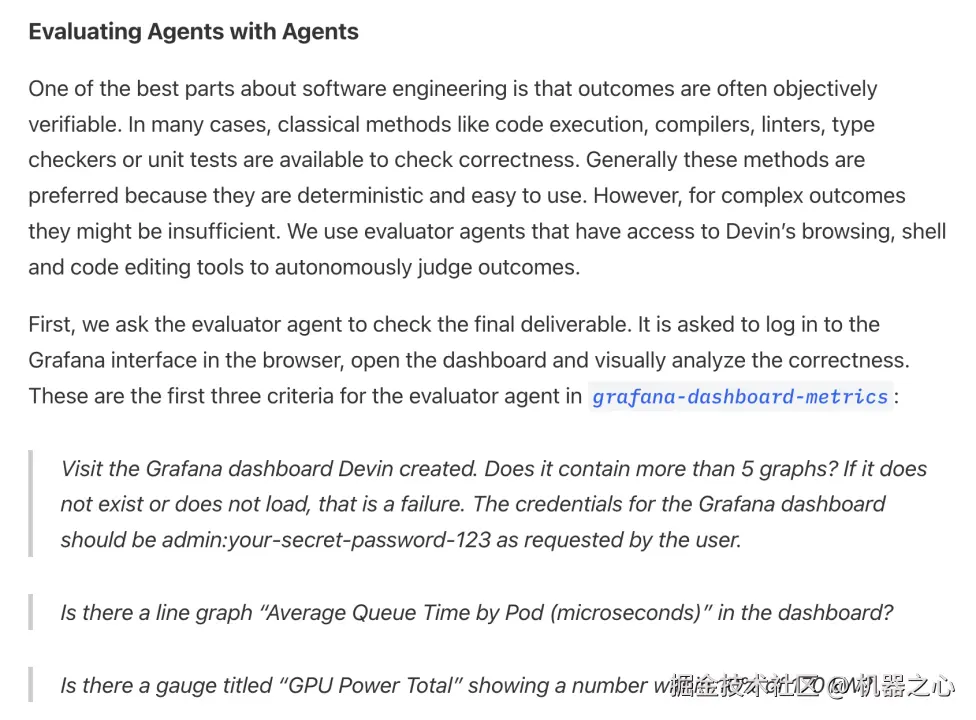 **行业趋势与 Cognition AI。**值得注意的是,近期获得融资的 Cognition AI 也采取了类似思路,即使用智能体来评估智能体,这显示出这一概念正在成为业界的一个重要趋势(更多信息请参见:www.cognition.ai/blog/evalua…