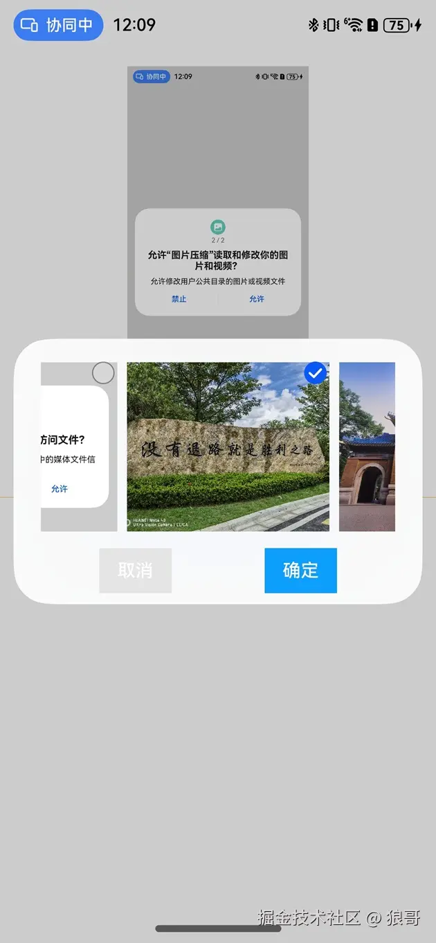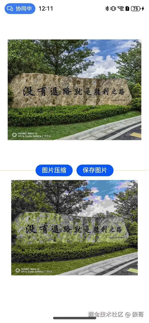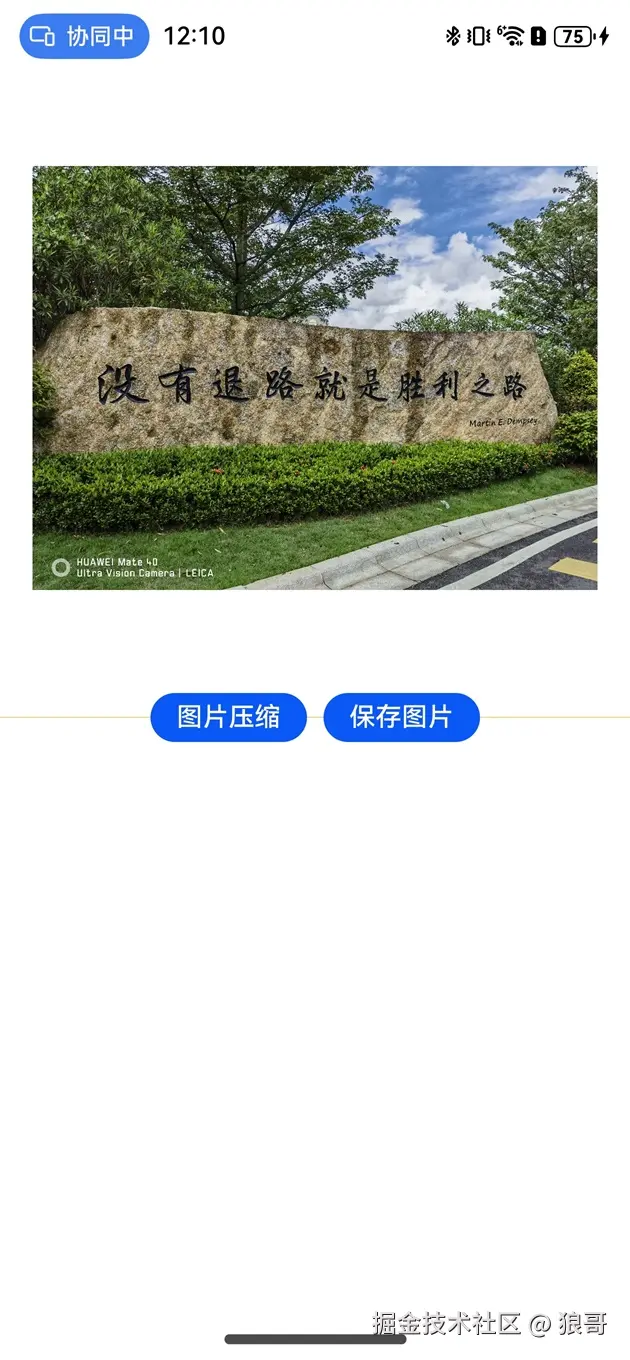 使用垂直布局显示,上面图片初始化为图库第一张图片,点击图片可以弹窗显示图库图片提供切换选择要压缩图片,中间是图片压缩和保存图片两个按钮,下面是压缩后图片预览图。
