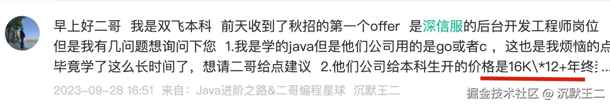 去年星球里就有双非本的球友拿到 16k,这比 985 硕的 15k 还要多 1k,可见学历的含金量在深信服上并没有体现出来。