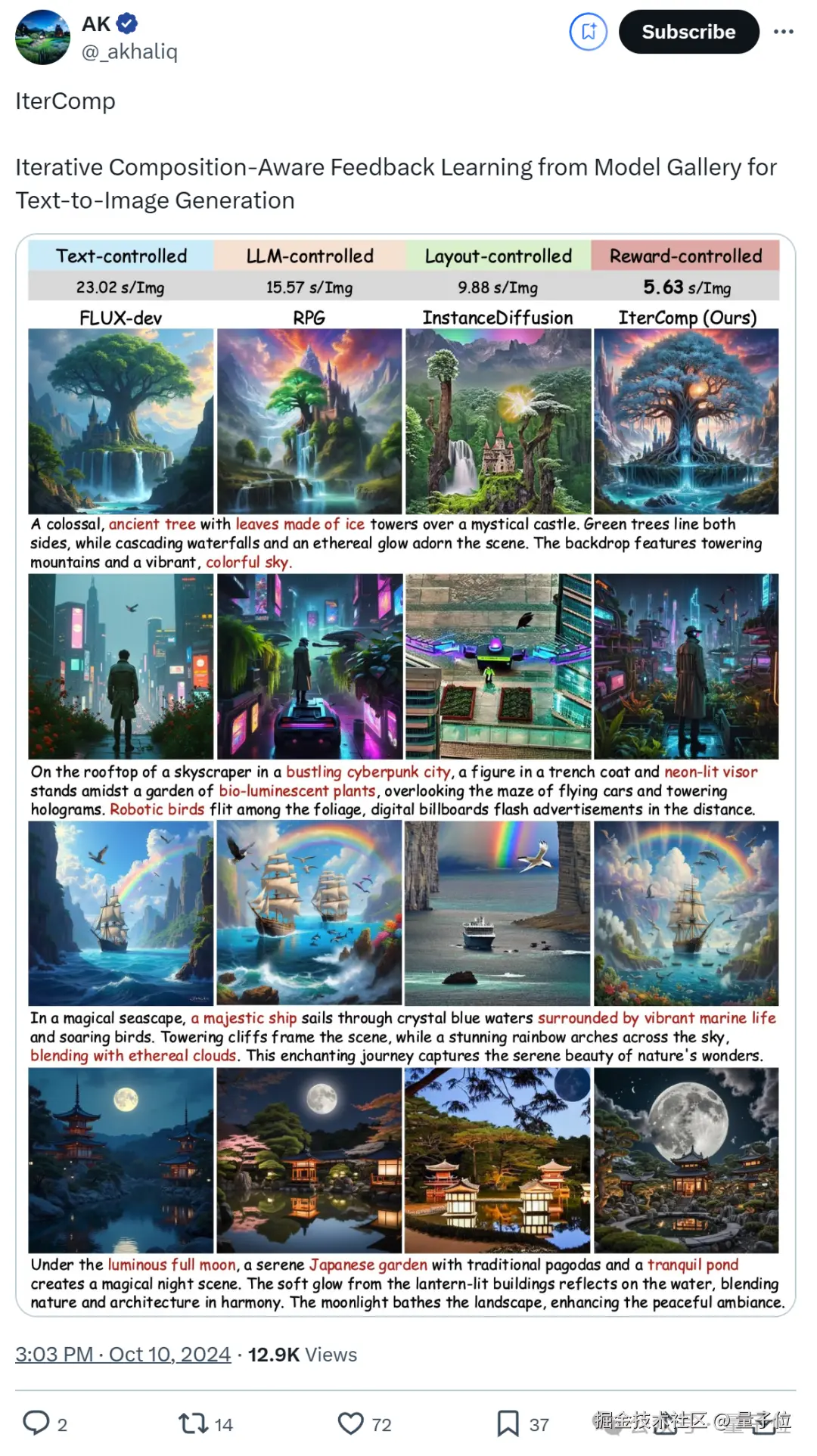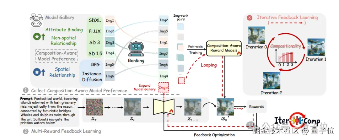 具体来说,清北、牛津、普林斯顿等机构的研究者提出了⼀个全新文生图框架 IterComp。