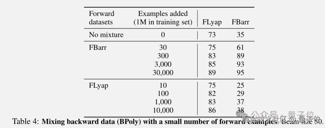 特别是在后向数据训练集中添加少量前向生成数据示例,带来显著的分布外测试性能提升。