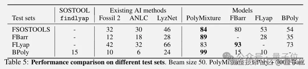 研究的最终目标是发现新的李雅普诺夫函数,在随机生成的 2-3 个多项式、2-5 个多项式的数据集中,最佳模型发现了 11.8% 和 10.1% 的李雅普诺夫函数,是传统方法的 10 倍。